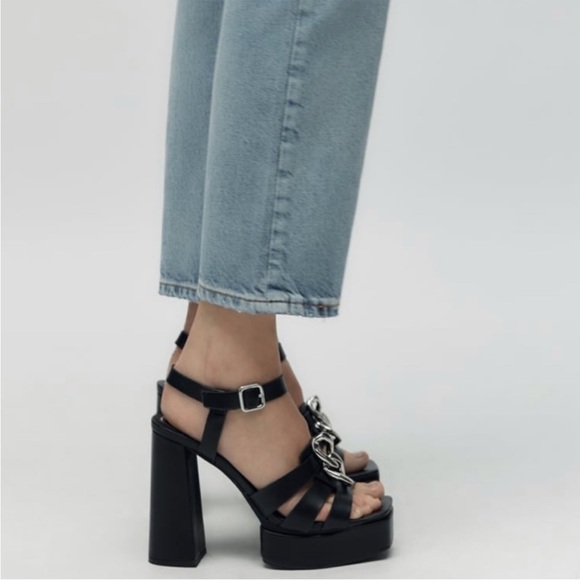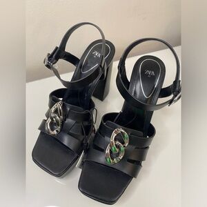 🏷️ NWT Zara Limited Edition Black Strappy Chunky Heels 9