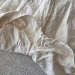 Crafted in a soft oyster white hue, it offers an elevated yet breezy style perfect for warm-weather events or casual chic outings. Hidden side zip closure for a seamless look.