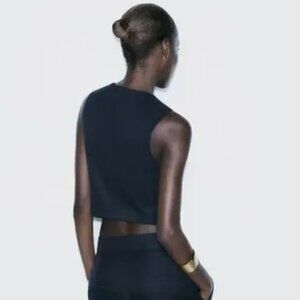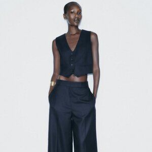 NWT Zara Navy Blue Button Down Waistcoat Vest S