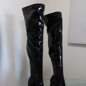 NWT Zara Over the Knee Block Heel Shiny PU Leather Boots