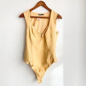 NWT Zara Pastel Yellow Sweetheart Neckline Sleeveless Bodysuit L