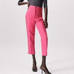 NWT Zara High Waist Slim Fit Cropped Pants Pink XS