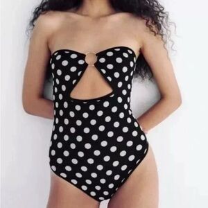 NWT Zara Polka Dot O-ring Cut Out Bodysuit M/L