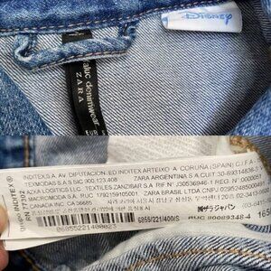 Zara denim jacket with Disney Minnie Mickey Donald patches.