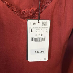 NWT Zara Red Flowy Camisole Tank Top Womens Large Lace Trim Goth Boho Vampire