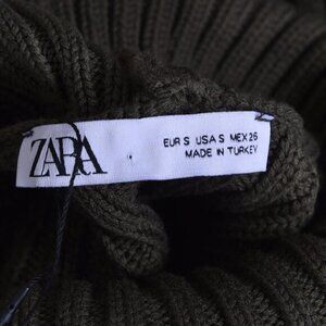 NWT Zara Ribbed Knit Cropped Sweater Turtleneck Khaki Green Size Small