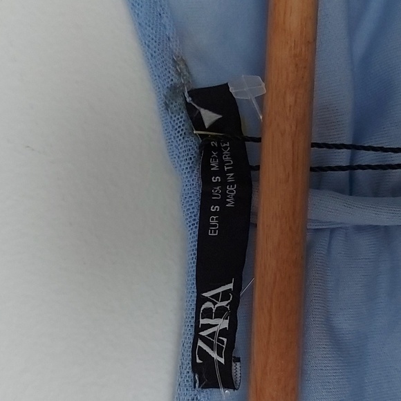 NWT Zara Rouched V Neck Top Blue With Rosettes Size Small. Excellent new condition.
