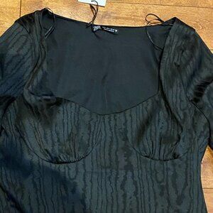 NWT Zara Satin Effect Crop Top long sleeves Size L