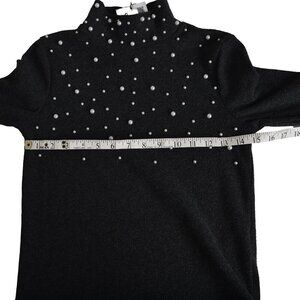Ultra soft dark grey mock neck sweater with attached pearl beads on the front.