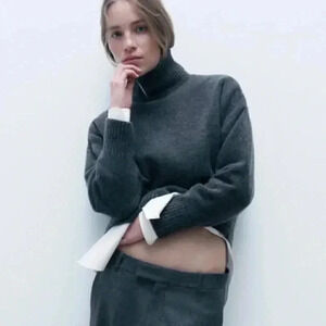 NWT Zara Soft Knit Sweater High Collar Gray Size Small