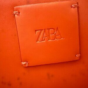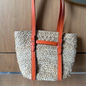 NWT Zara Straw Bag with Orange Leather Handles and Piping