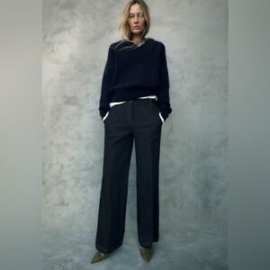 NWT Zara Sz XS Black Flare Leg Trouser Dress Pants With Hand Pockets Flowy