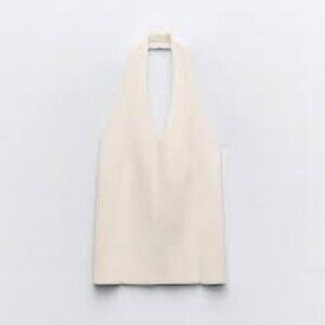 NWT Zara Textured Knit Halter Top Cream Sleeveless Size Small