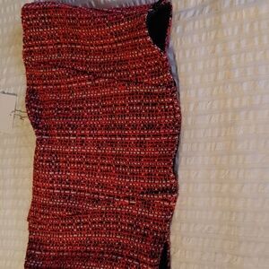 - pretty tweed bandeau too in red white & black, outside is 63% cotton, 30% polyester, 7% viscose