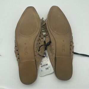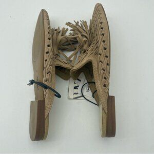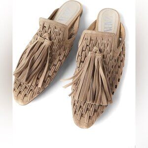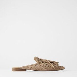 NWT Zara Women Flat braided leather mules with tassels, Sz 36