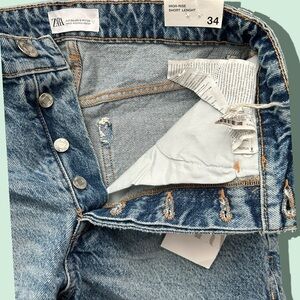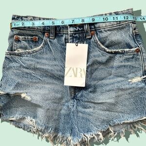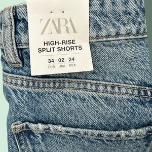 NWT Zara Women’s High-Rise Split Shorts Size 2. Denim shorts with a high waist and five pockets. Washed effect and ripped detail. Frayed hem. Front button closure. Split sides. Super cute, just in time for spring/summer!