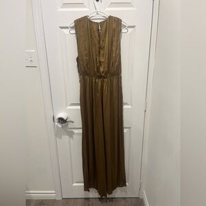 NWT Zara Womens Small Green Satin Sleeveless Wide Leg Jumpsuit Gold Buckle Boho