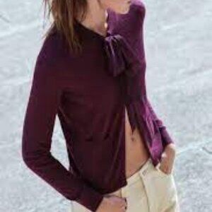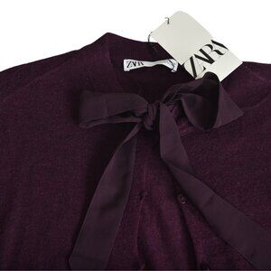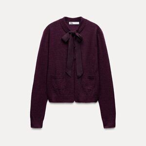New with Tags NWT Zara Wool & Alpaca Blend Tied Cardigan Sweater Jacket Purple