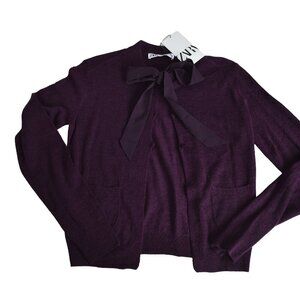NWT Zara Wool & Alpaca Blend Tied Cardigan Sweater Jacket Purple Small