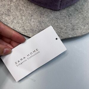 NWT Zara Wool Hat Grey Purple Trim 22”