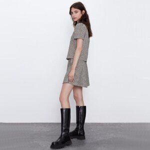 NWT Zara animal print black and beige cream mini skirt