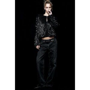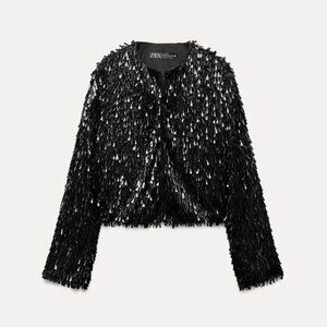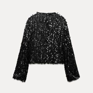 NWT Zara black fringed beaded sequined cropped jacket, S