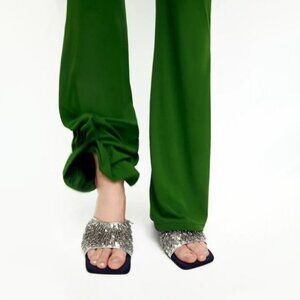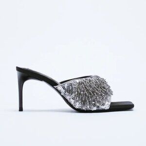 NWT Zara black, grey and silver beaded strap heeled sandals