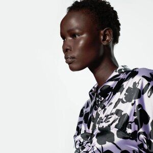 NWT Zara black & lilac floral print satin effect ruched dress, L
