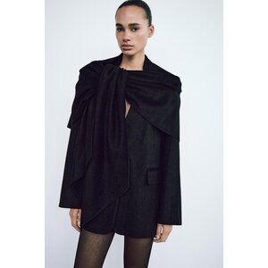NWT Zara black oversized wool blend scarf accent blazer jacket, XS-S