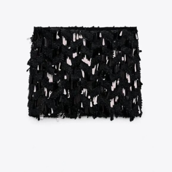 NWT Zara black sequin applique high waisted mini skirt, XS