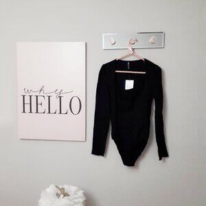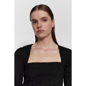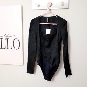 NWT Zara black structured textured square neck bodysuit, M