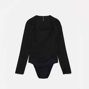 NWT Zara black structured textured square neck bodysuit