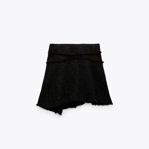 NWT Zara black textured sequin and semi-sheer frayed mini skirt