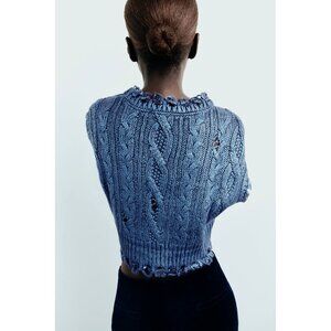 NWT Zara blue cable knit cropped metallic vest sleeveless sweater, S