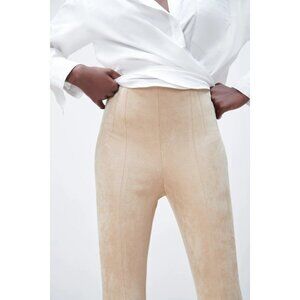 NWT Zara camel light brown, sand faux suede high rise leggings with zipper accents, XS
