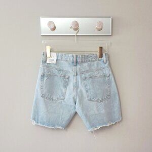 NWT Zara light blue wash mid rise Bermuda loose fit patch denim shorts, US4
