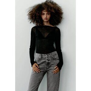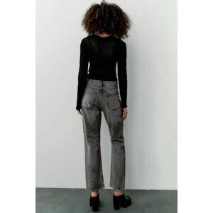 NWT Zara lighter wash black sparkle applique embellished mid rise straight leg and regular length jeans, 10