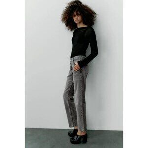 NWT Zara light wash black sparkle embellished mid rise straight leg jeans, 10