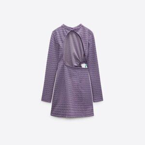 NWT Zara lilac jacquard print cut out back, heart detail side short dress, L