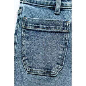 NWT Zara medium blue wash high rise flare leg ankle stretch denim jeans