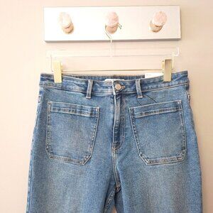 NWT Zara medium blue wash high rise flare leg ankle stretch denim jeans, 12