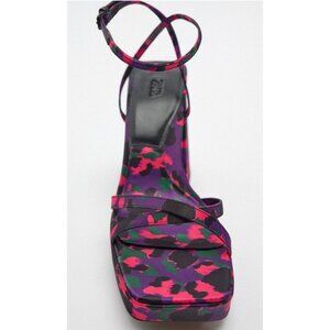 NWT Zara multicolour abstract print chunky platform heeled sandal, EU 38