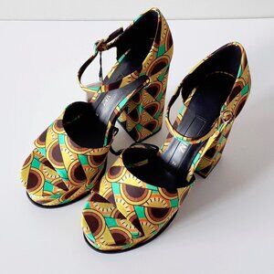 NWT Zara multicolour retro-inspired abstract print chunky platform heeled sandal