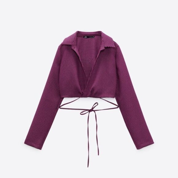 NWT Zara purple and black houndstooth V-neck blouse top