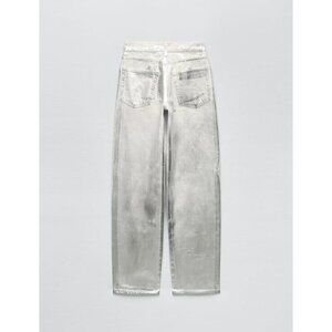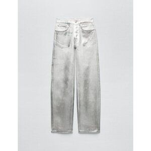NWT Zara silver foil relaxed fit straight leg mid waist jeans, 4
