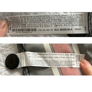 Resort Ready! Loose and Cropped Wide Leg Pants in Deep Red, Navy and Cream Stripes from Zara’s Trafaluc Collection is timeless and trendy all at once. Wide waistband with front button detail and elasticized in back, pockets and pleats. Cropped length. Drapey fabric of 98%Polyester and 2%Spandex for ease of movement. Style #7102/150/065. Made in Myanmar. Original Price US$35.90