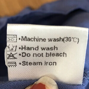 Do Not Bleach/Iron, Hang or Line to Dry.