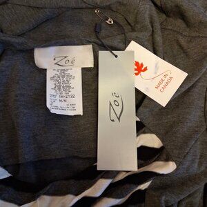 NWT Zoe Women's Gray Black White Patchwork Design Blouse ¾ Sleeve Top Size 8 M