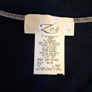 NWT Zoe Women's Navy-Blue Teal Patchwork Design Blouse ¾ Sleeve Top Well Design Tailored Spring Fall Blouse Tops Size M could fit for 8 or 10