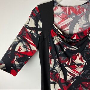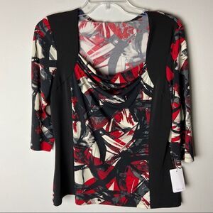 NWT black white red 3/4 sleeve summer top. Soft lightweight material some stretch. Softworks brand. business casual blouse, summer shirt. New with tags.
